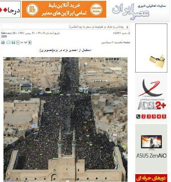 یک سایت خبری در استان یزد در اشتباهی سوال برانگیز عکس استقبال از رئیس جمهور سابق را بعنوان عکس استقبال از روحانی منتشر کرد.