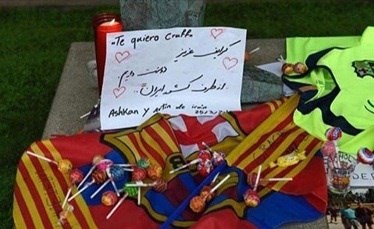 در این مراسم افراد حاضر به یاد این اسطوره فراموش نشدنی تیم ملی هلند و باشگاه بارسلونا اشیایی گذاشتند. در تصویری که از این مراسم منتشر شده دست نوشته ای فارسی برای کرایف در میان این یادگاری ها به چشم می خورد.