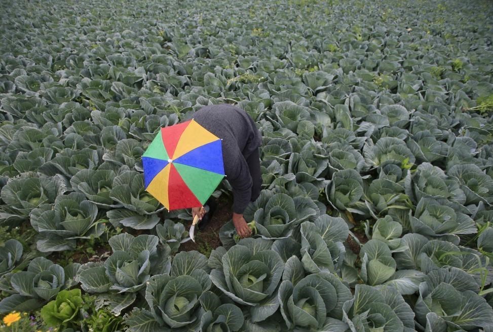 یک لبنانی در جنوب صیدون، در حال برداشت کلم بروکلی