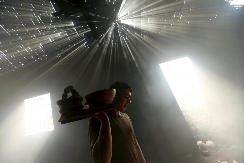 یک بینوای هندی در یک زاغه در حومه کلکته پناه گرفته است