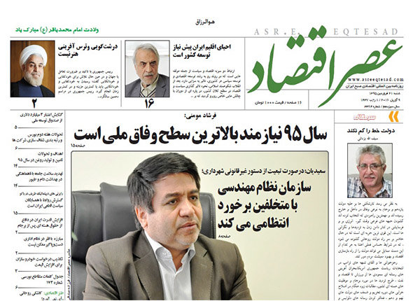 صفحه اول روزنامه های اقتصادی ۲۱ فروردین ۹۵
