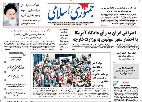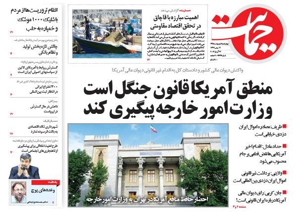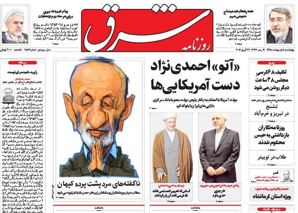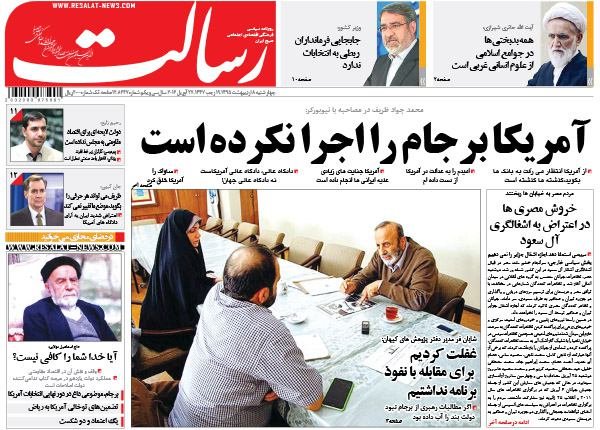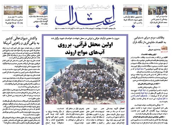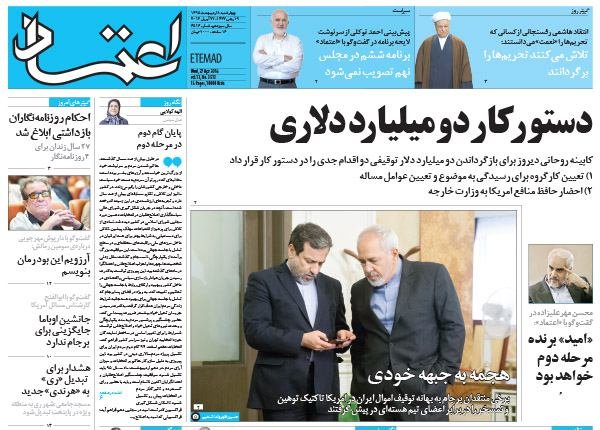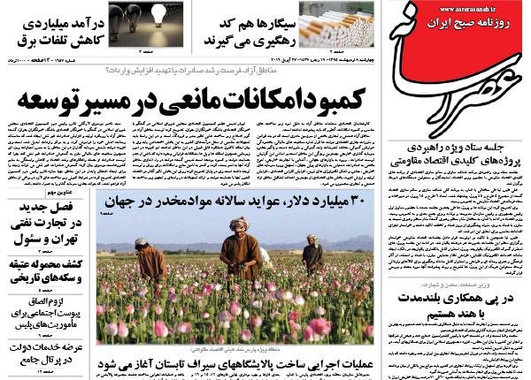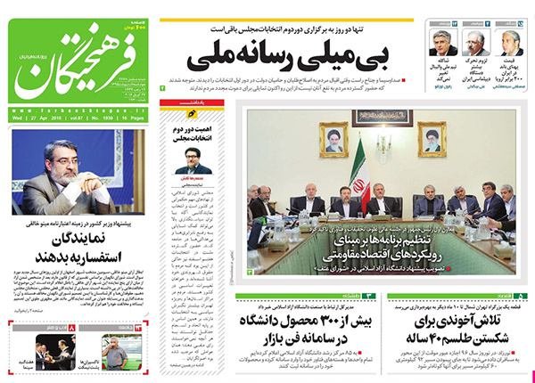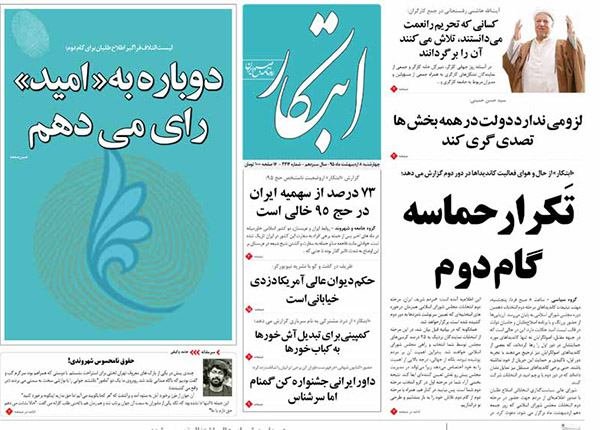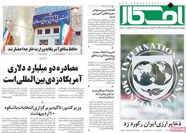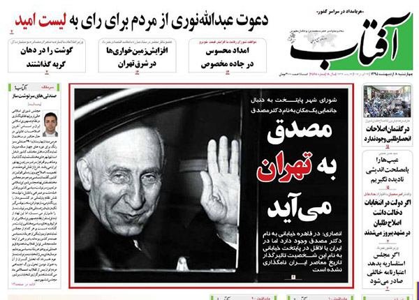 صفحه اول روزنامه های ۸ اردیبهشت ۹۵