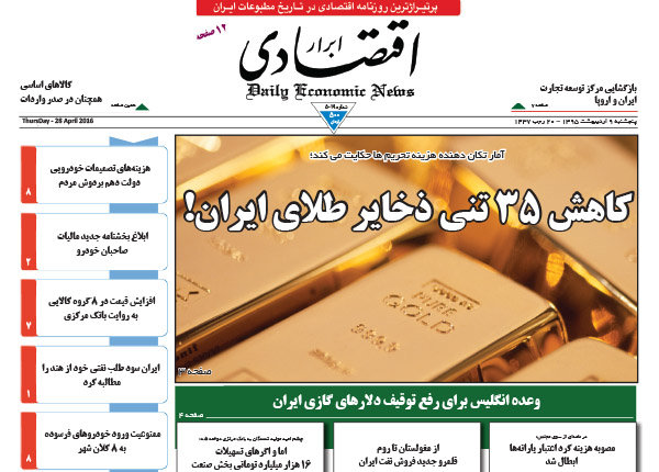 صفحه اول روزنامه‌های اقتصادی ۹ اردیبهشت ۹۵