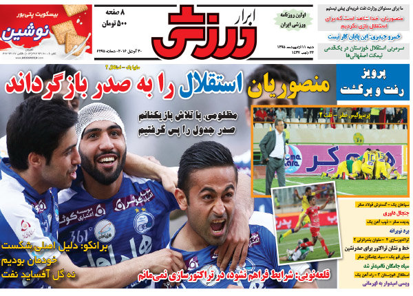 صفحه اول روزنامه‌های ورزشی ۱۱ اردیبهشت ۹۵