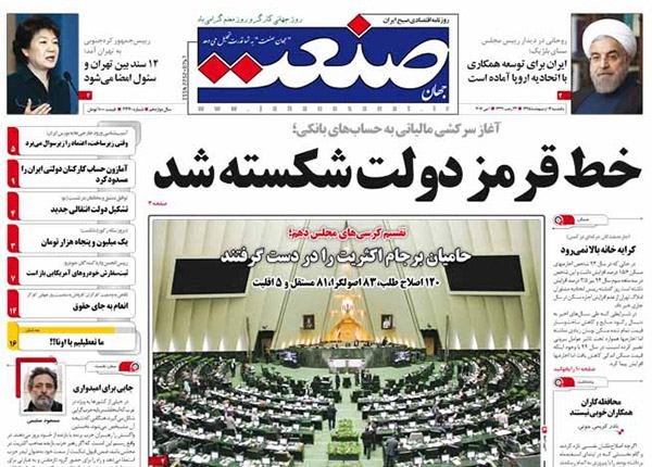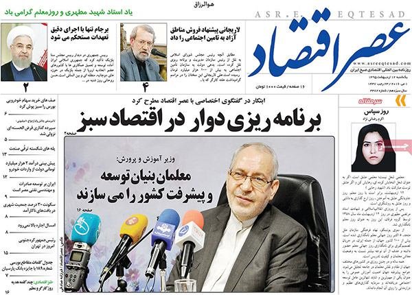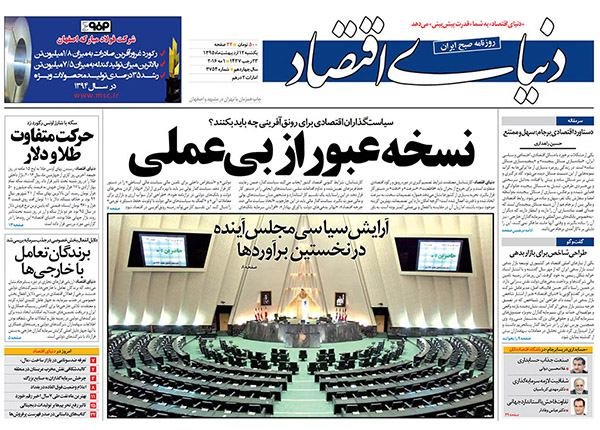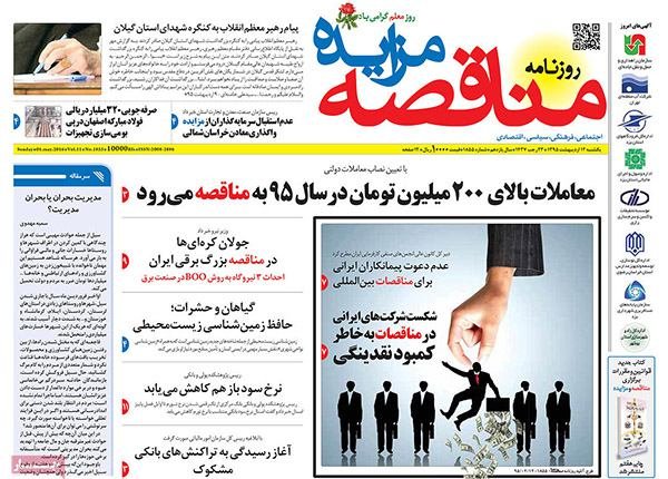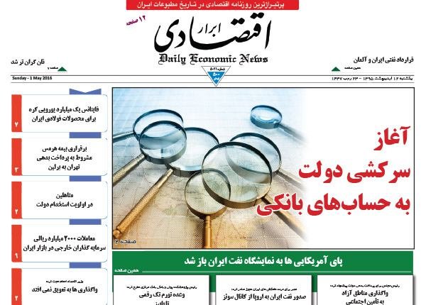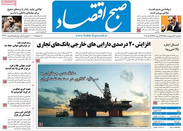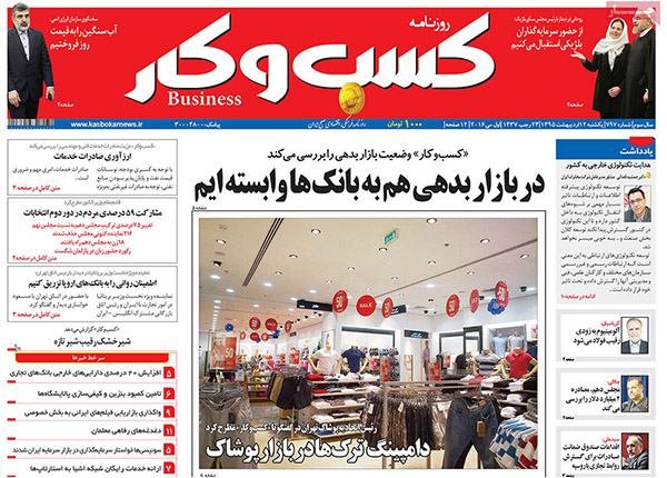 صفحه اول روزنامه‌های اقتصادی ۱۲ اردیبهشت ۹۵