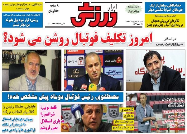 صفحه اول روزنامه های ورزشی ۱۸ اردیبهشت ۹۵