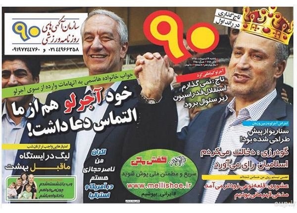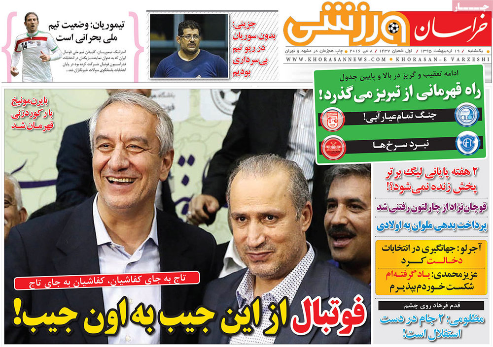 صفحه اول روزنامه‌های ورزشی ۱۹ اردیبهشت ۹۵
