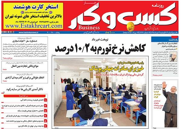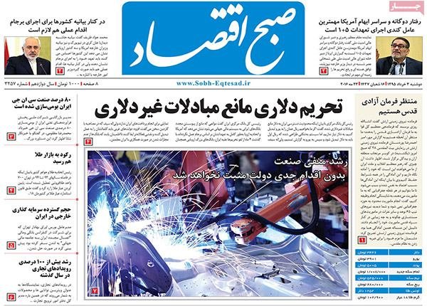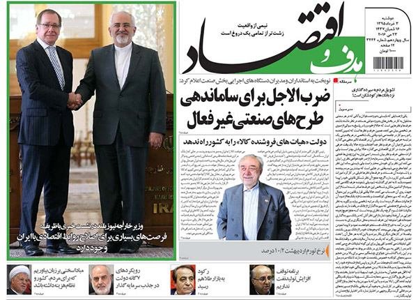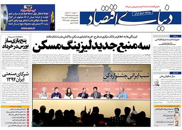 صفحه اول روزنامه‌های اقتصادی ۳ خرداد ۹۵
