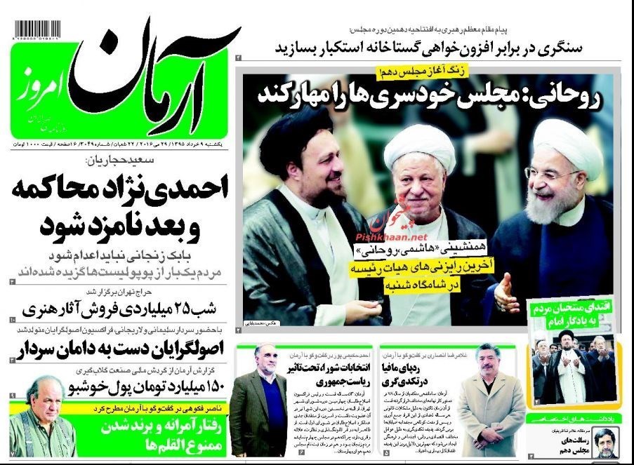 تصاویر صفحه اول روزنامه‌های‌ ۹ خرداد