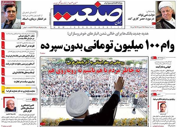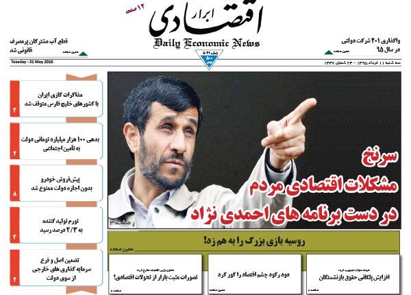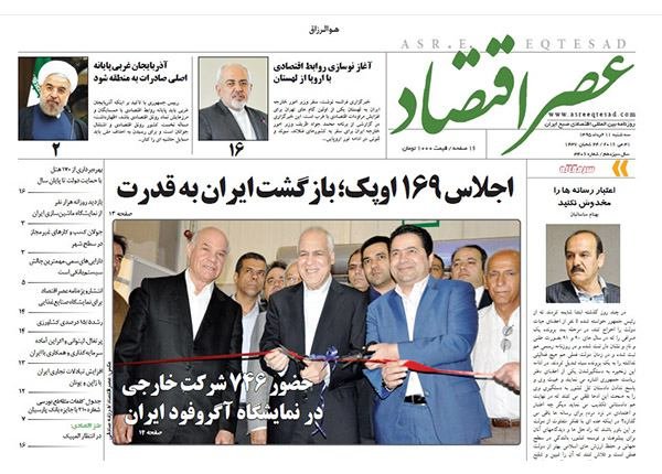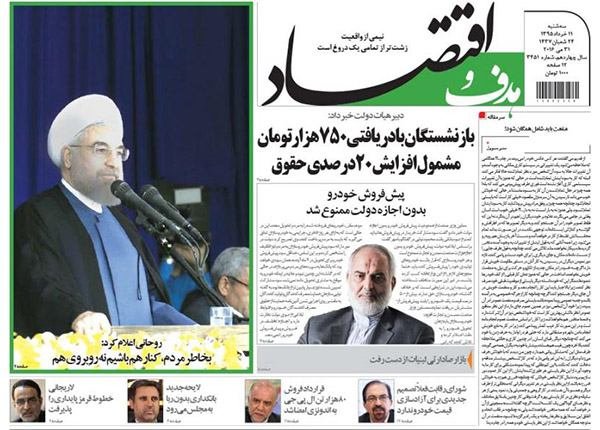 صفحه اول روزنامه‌های اقتصادی ۱۱ خرداد ۹۵