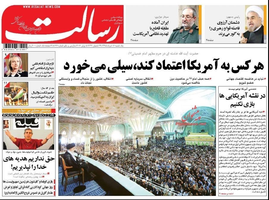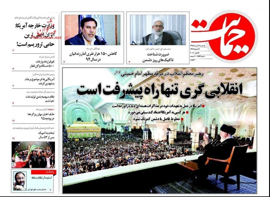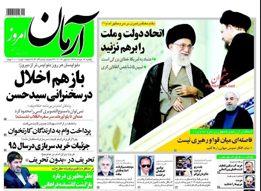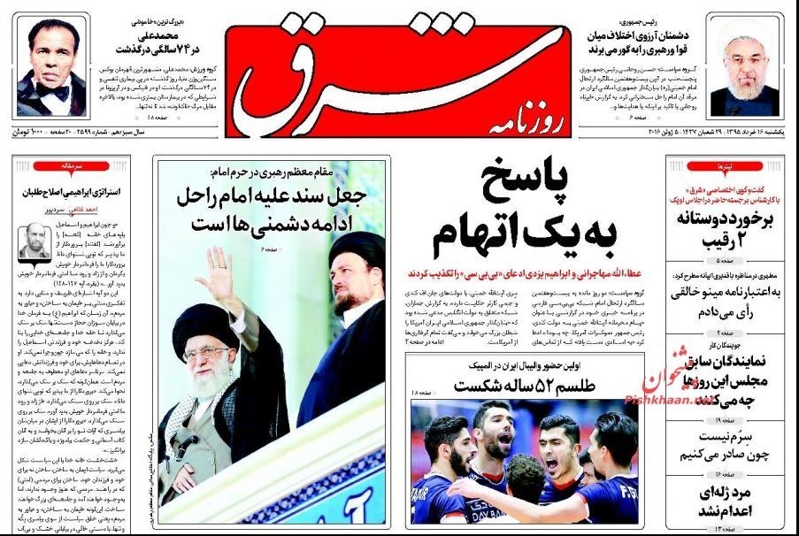 تصاویر صفحه اول روزنامه‌های‌ ۱۶ خرداد