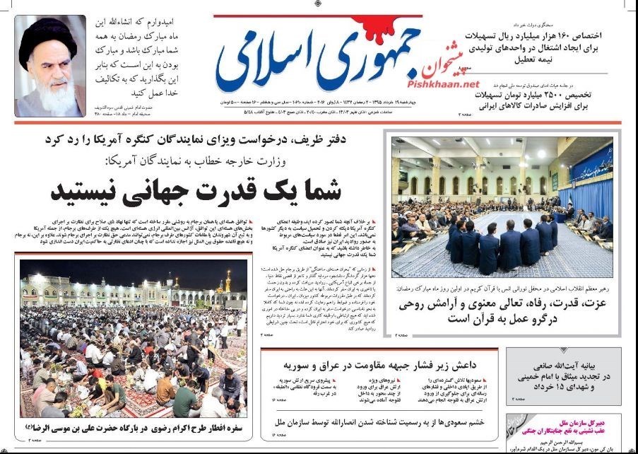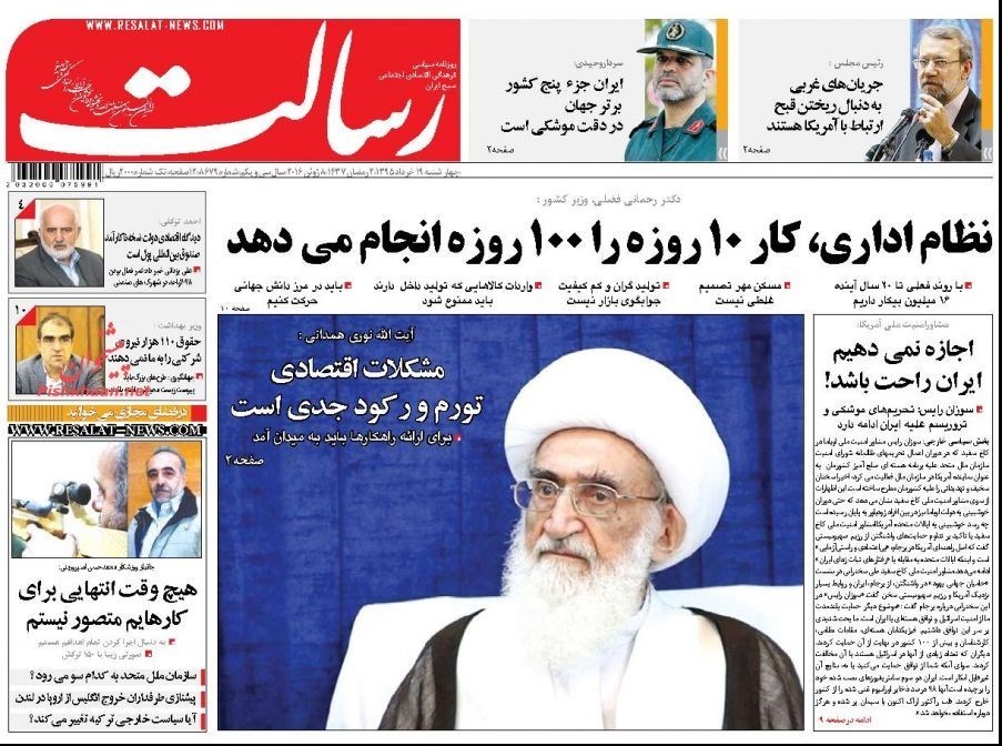 تصاویر صفحه اول روزنامه‌های‌ ۱۹ خرداد