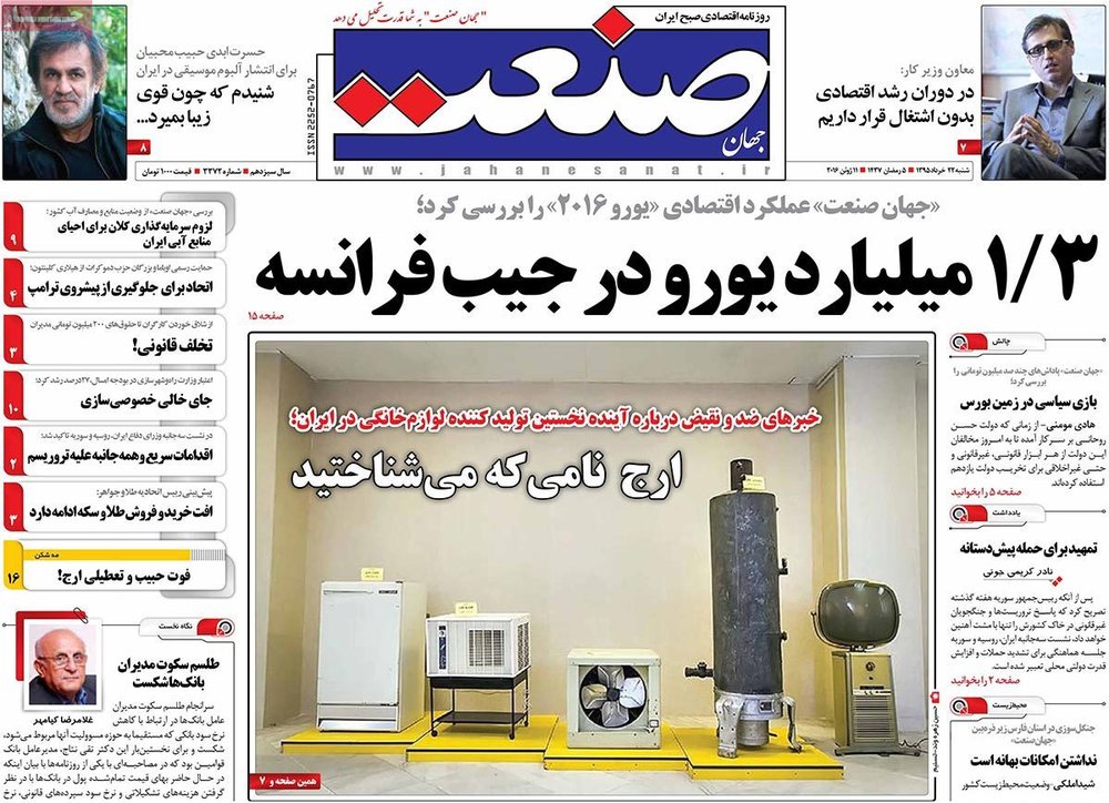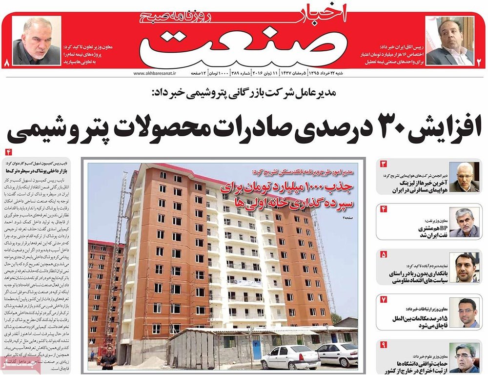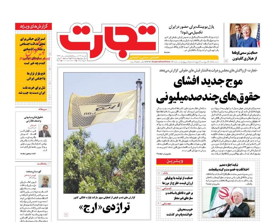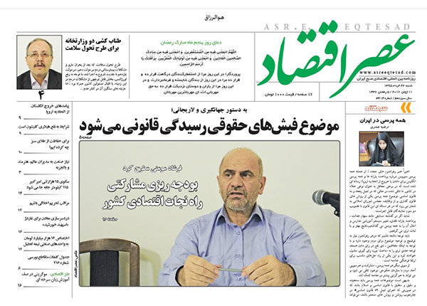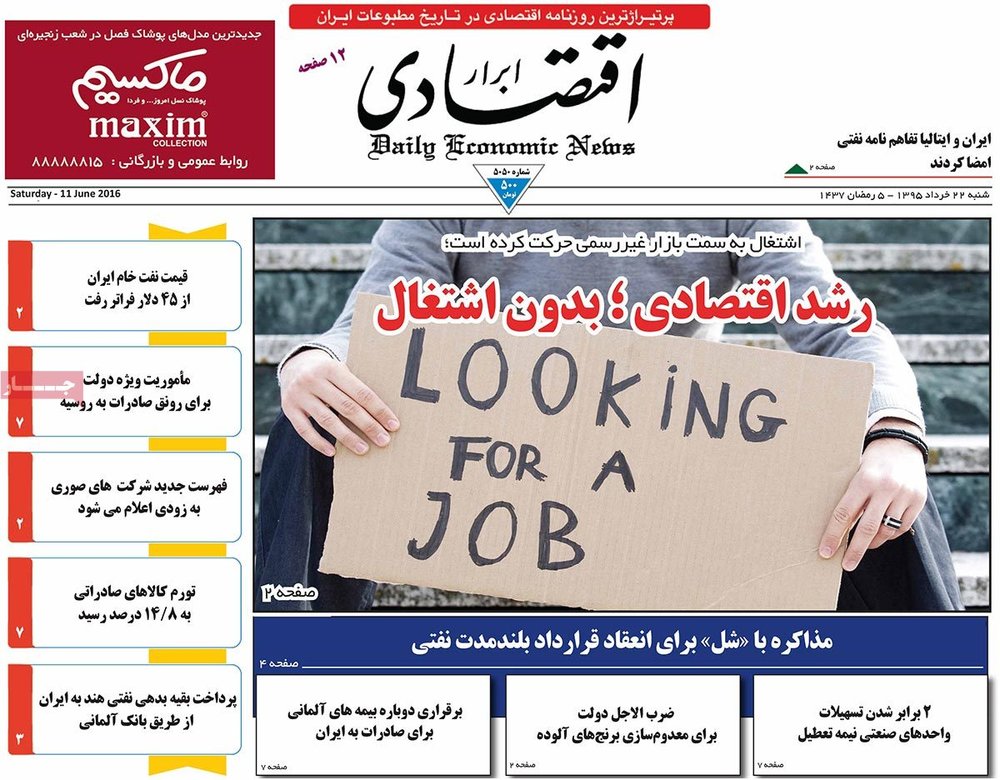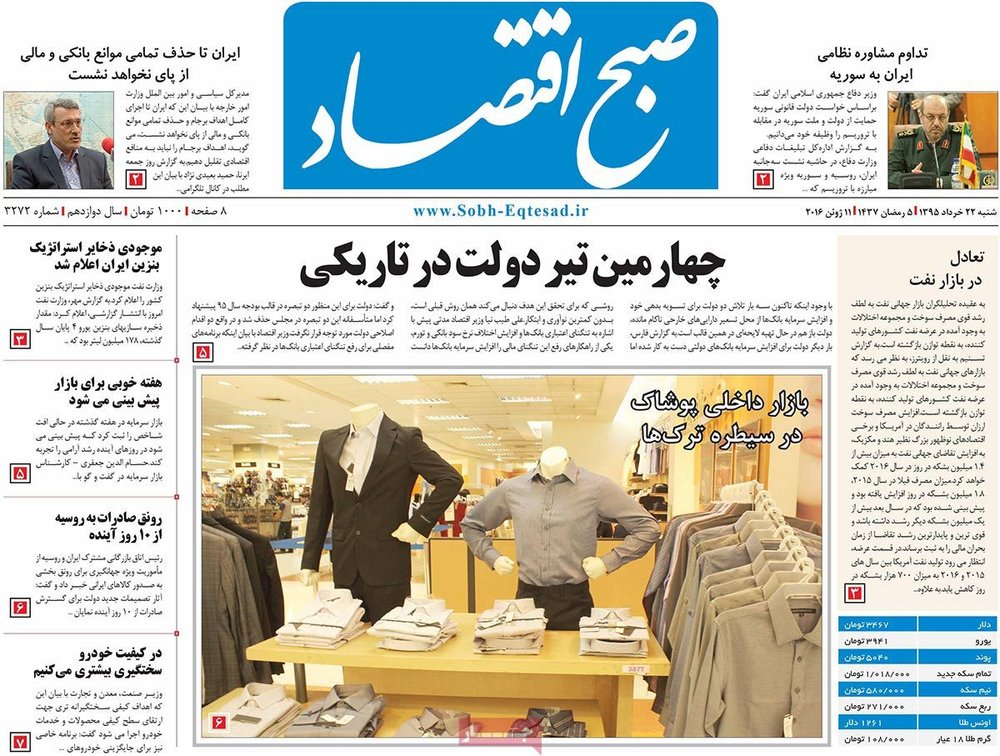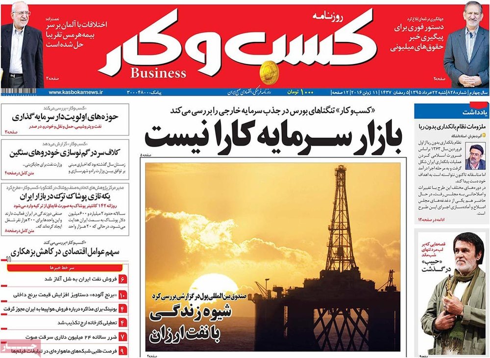 صفحه اول روزنامه‌های اقتصادی ۲۲ خرداد ۹۵