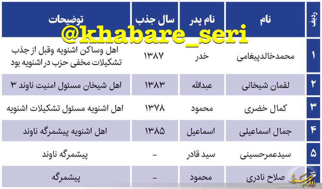 اسامی و مسئولیت های اشرار ضدانقلاب به هلاکت رسیده توسط رزمندگان سپاه اسلام در منطقه اشنویه.