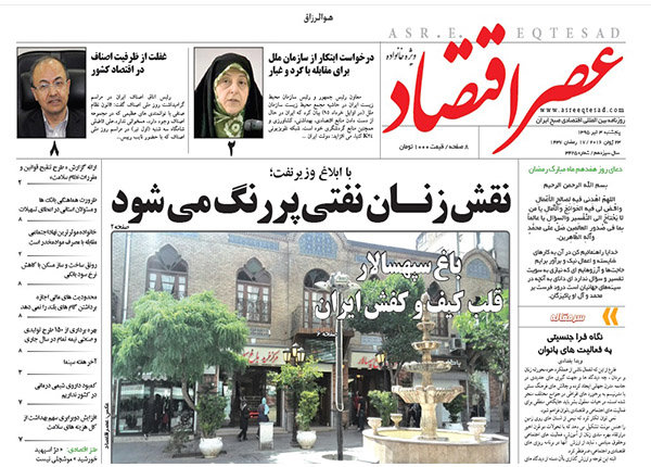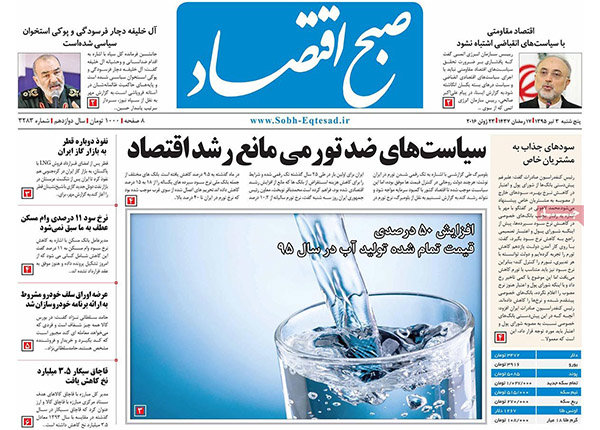 صفحه اول روزنامه‌های اقتصادی ۳ تیر ۹۵