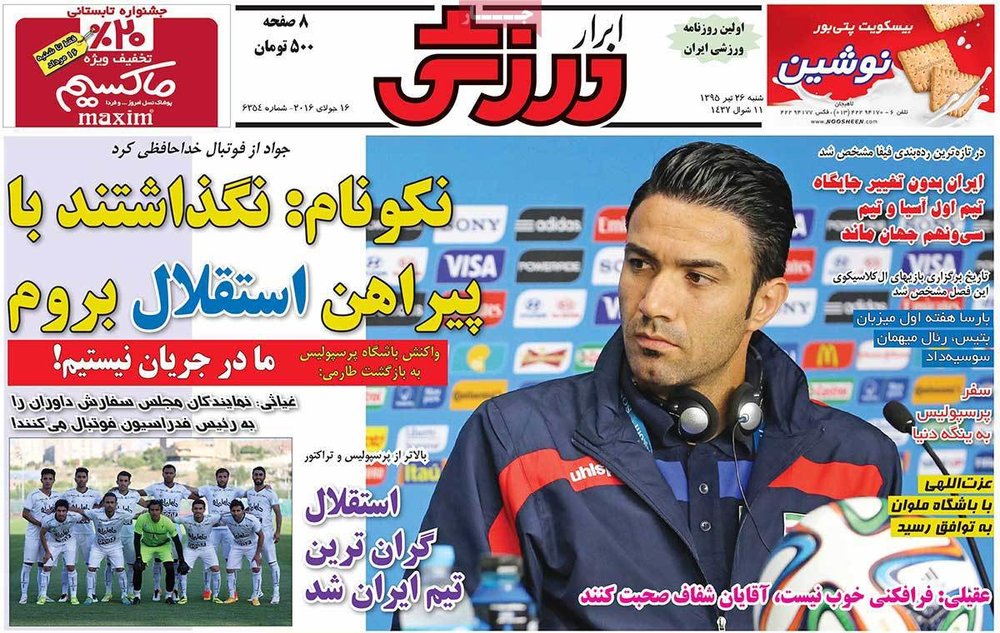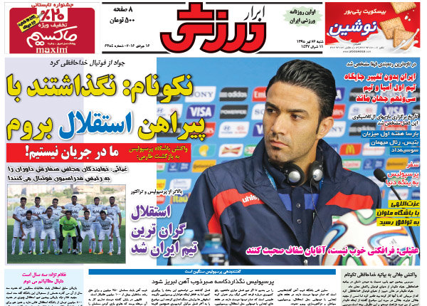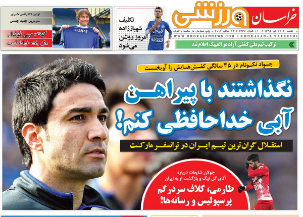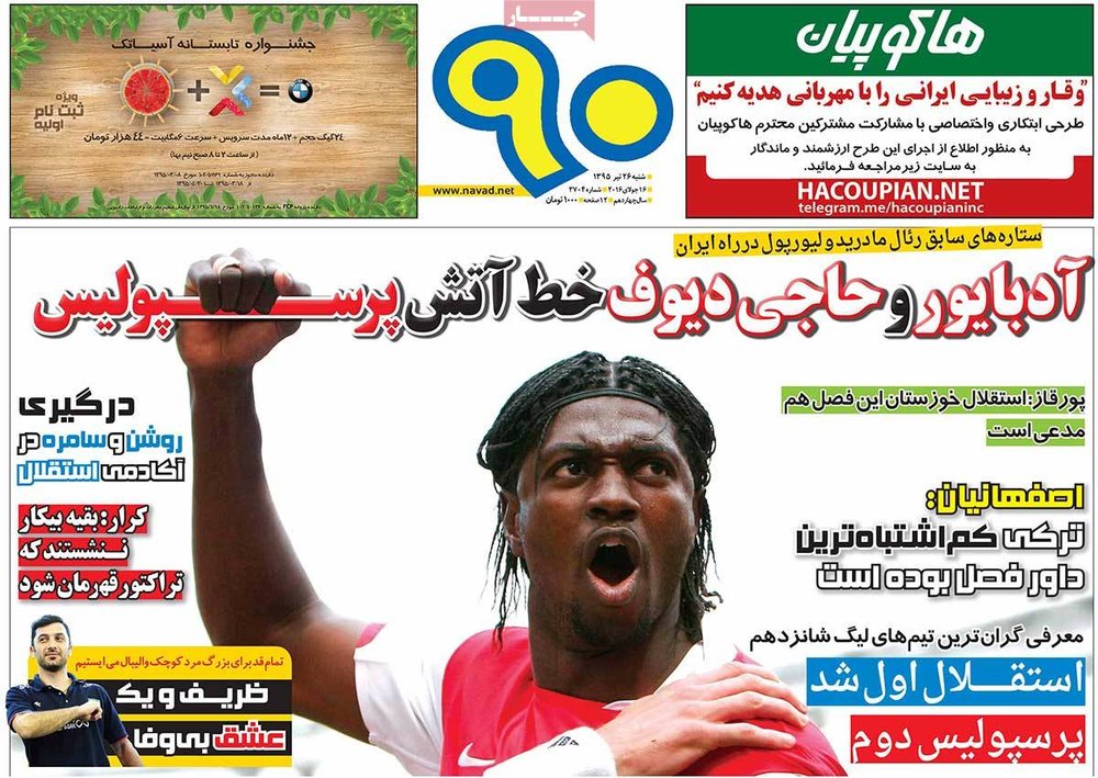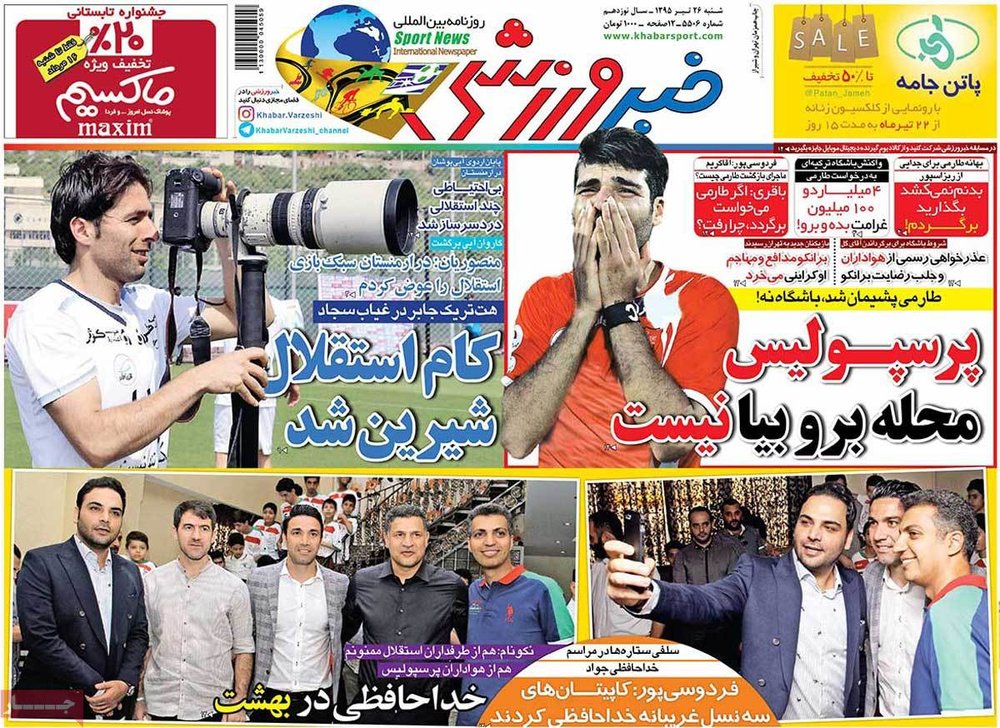 صفحه اول روزنامه‌های ورزشی ۲۶ تیر ۹۵