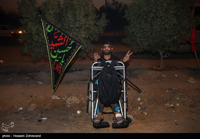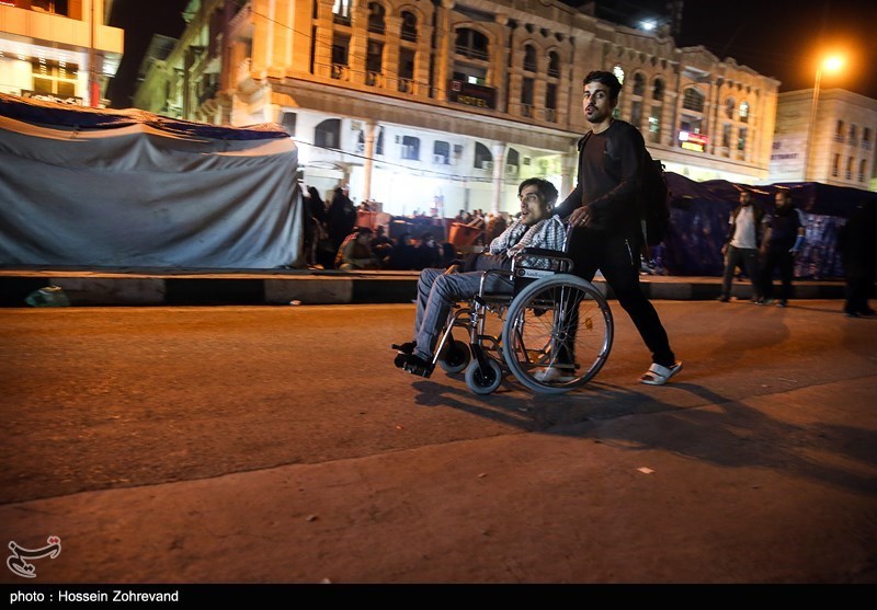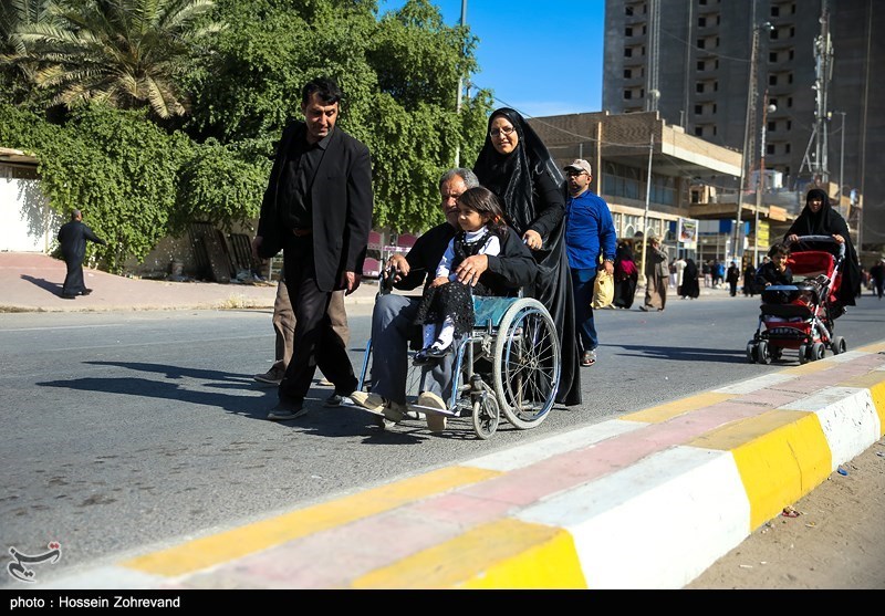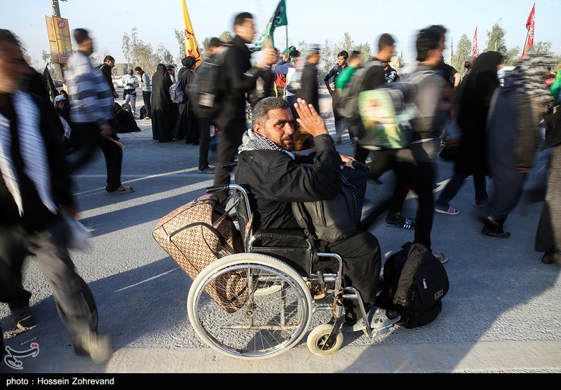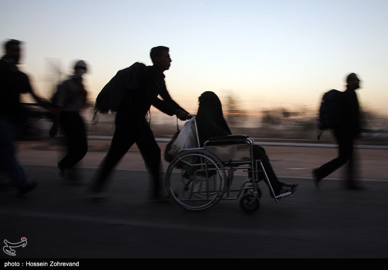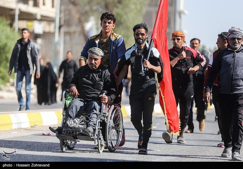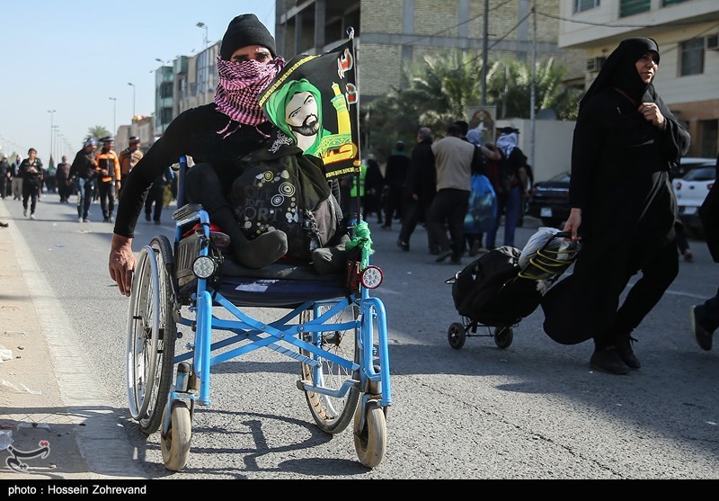 حضور زائرین معلول در مسیر نجف به کربلا/گزارش تصویری
