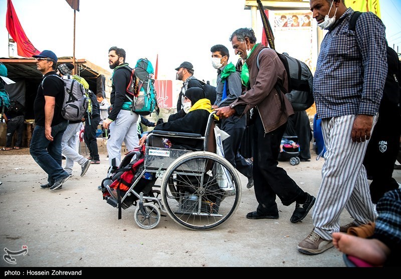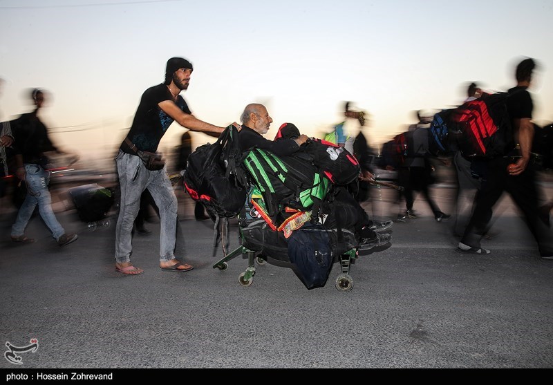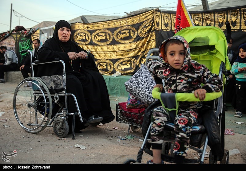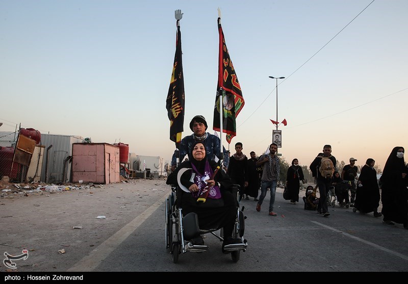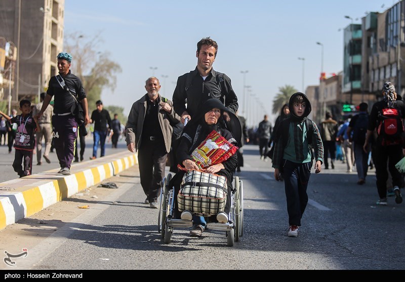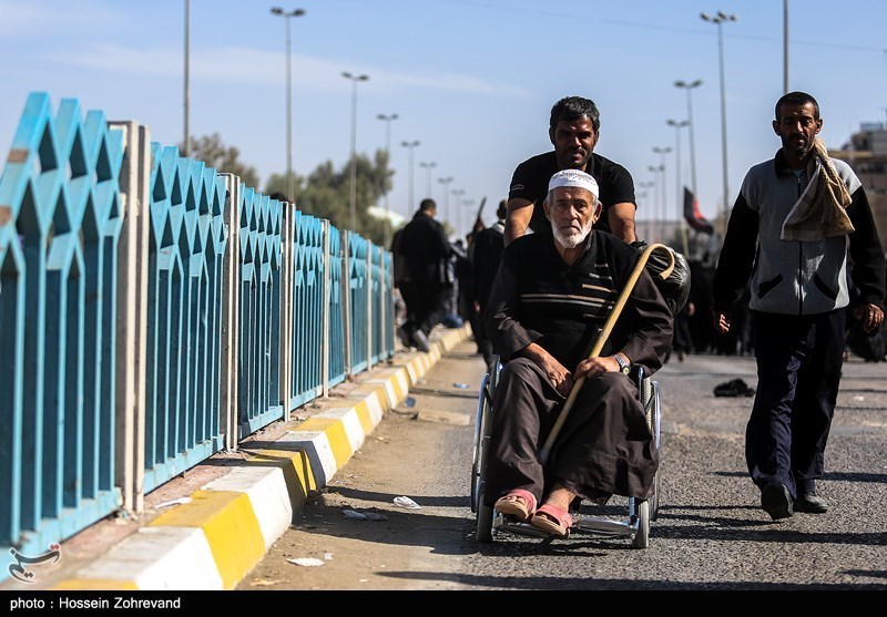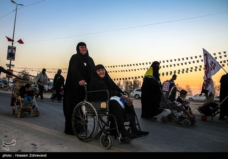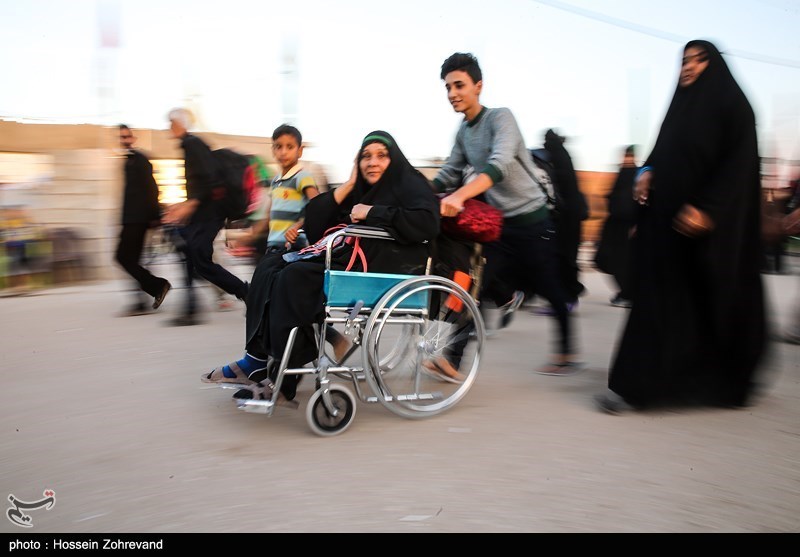 حضور زائرین معلول در مسیر نجف به کربلا/گزارش تصویری