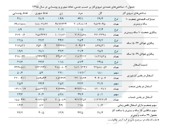 مرکز آمار ایران در آخرین گزارش خود چکیده آمارگیری خود درسال 95 را اعلام کرد.