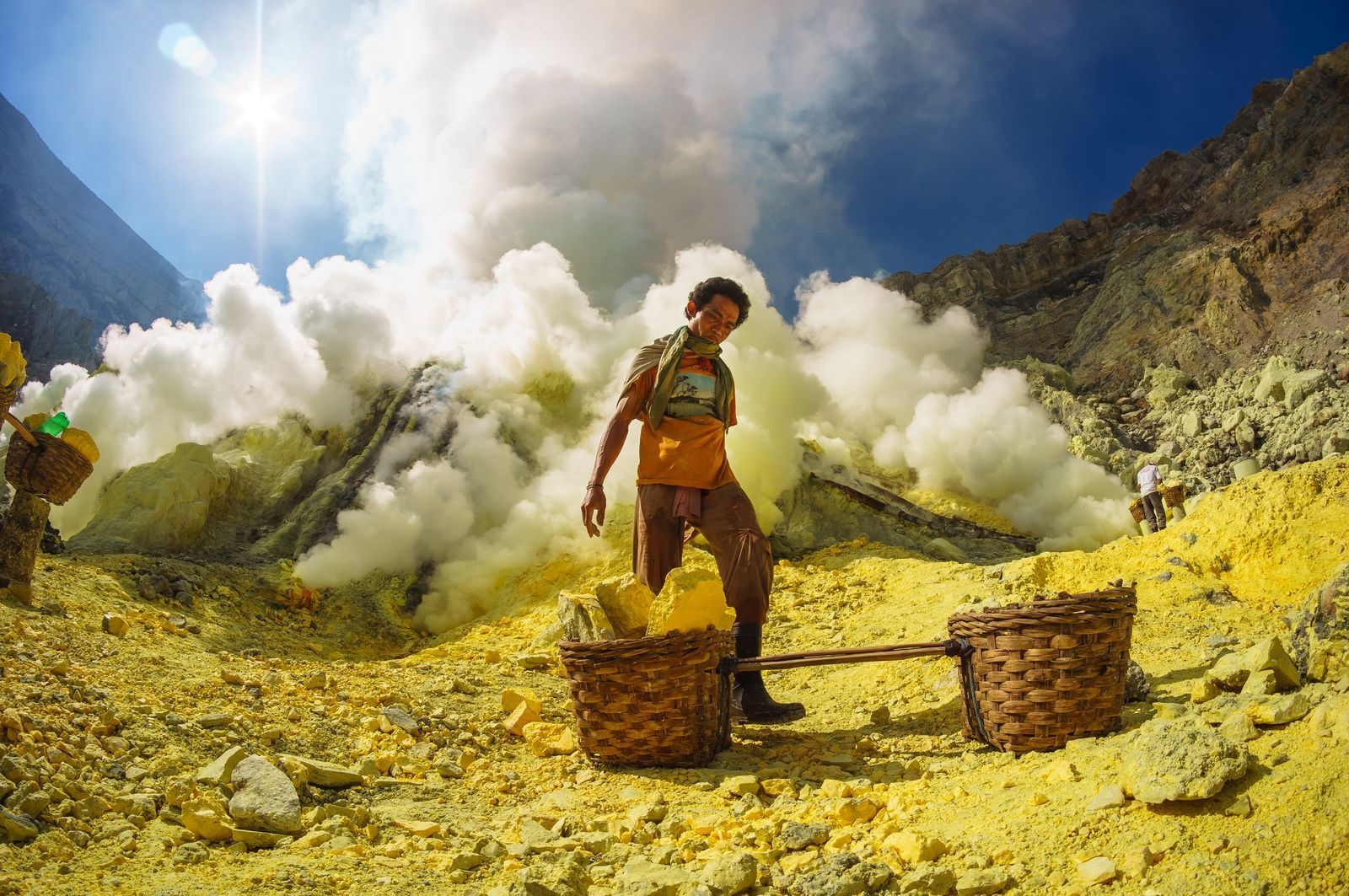عکس روز نشنال جئوگرافیک به تصویری از یک معدنچی در حال جمع آوری گوگرد در دهانه یک کوه آتشفشانی در اندونزی اختصاص یافته که سختی این شغل را نشان می‌دهد.