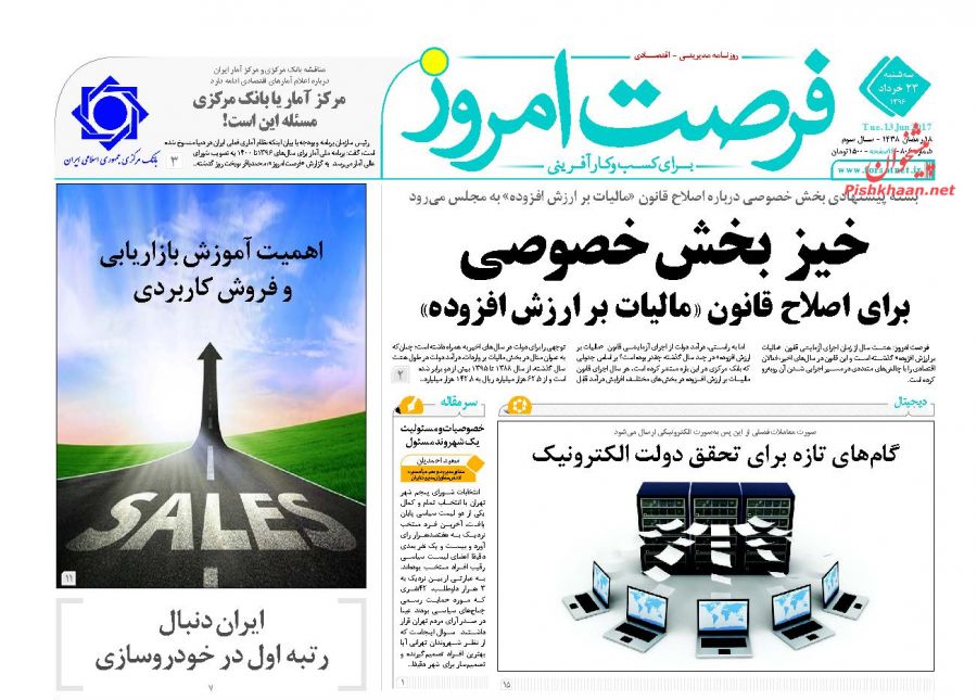 صفحات نخست روزنامه های اقتصادی سه شنبه 23 خردادماه 96 در پیشخوان رازق بخوانید