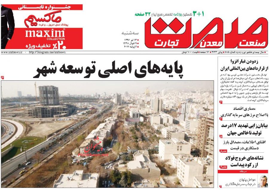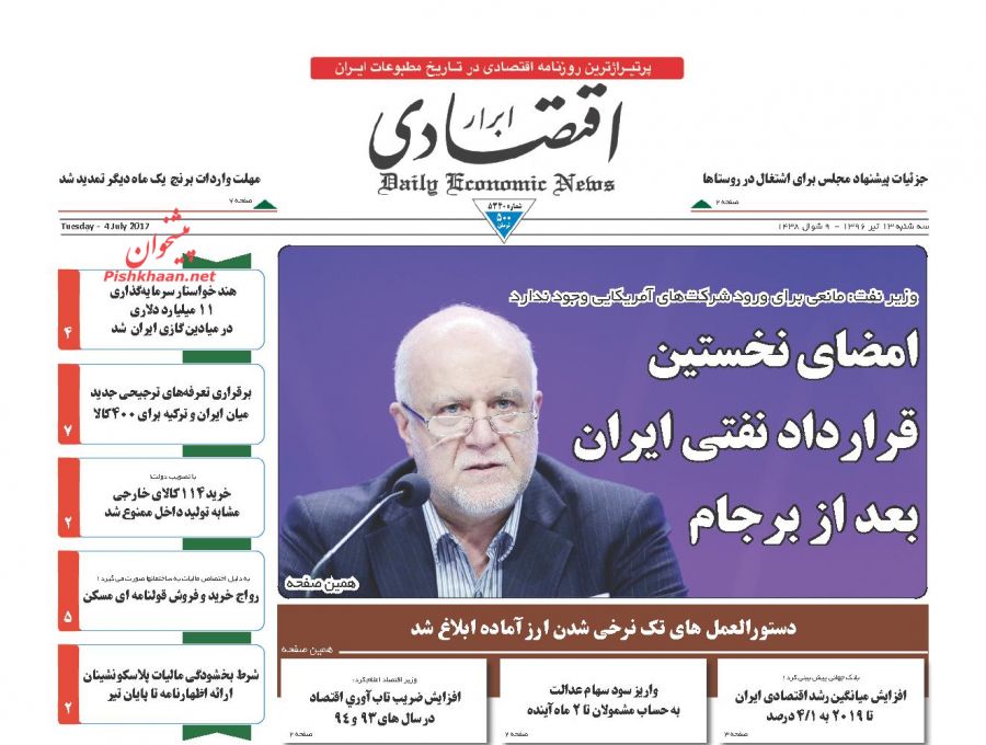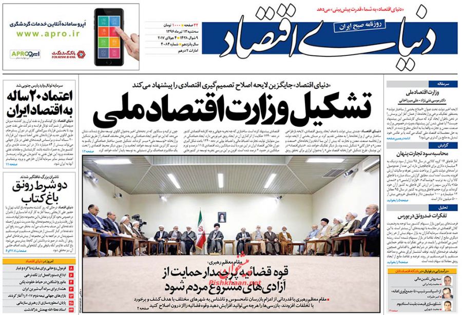 صفحه نخست روزنامه های اقتصادی 13 تیر 96