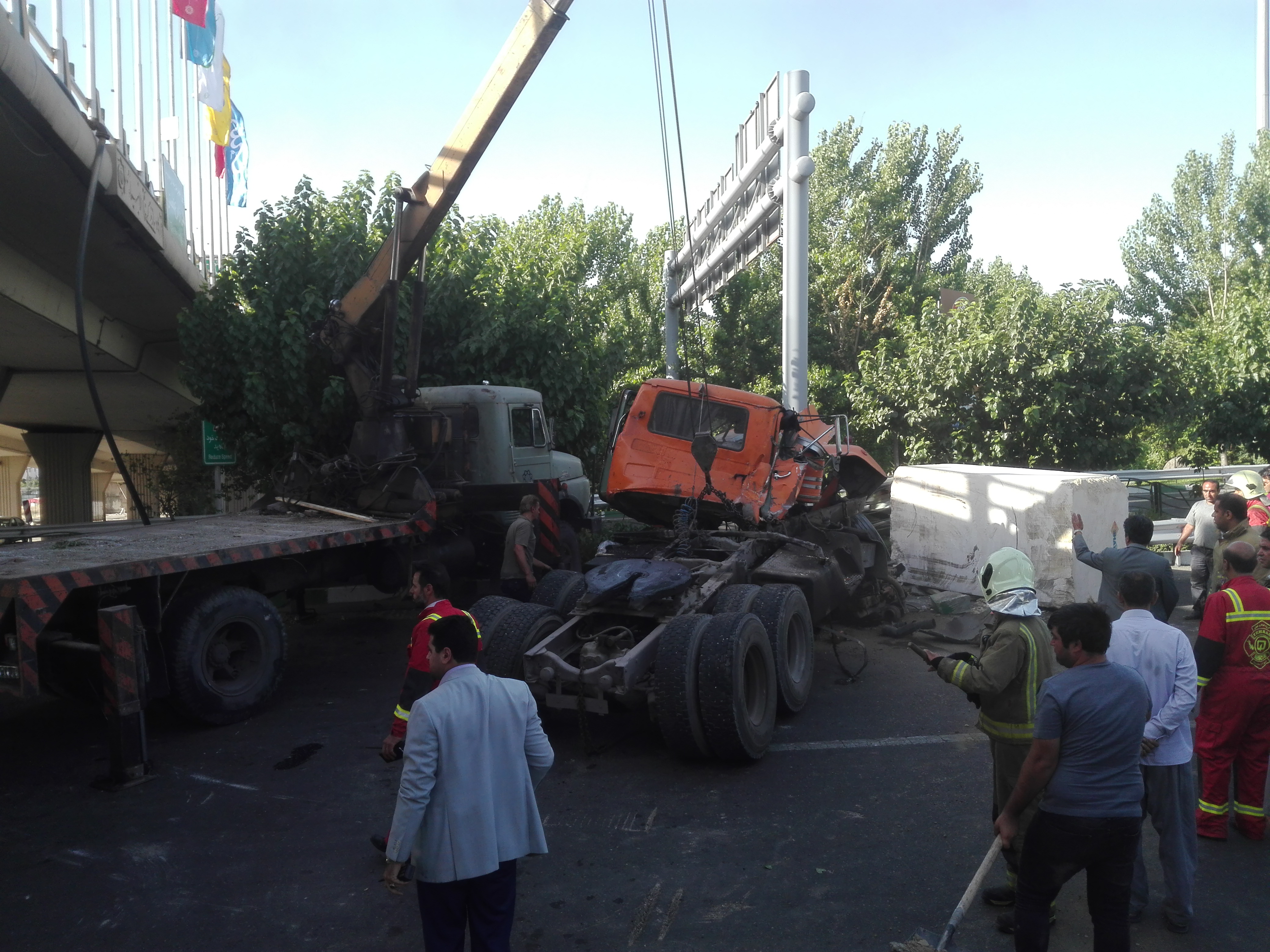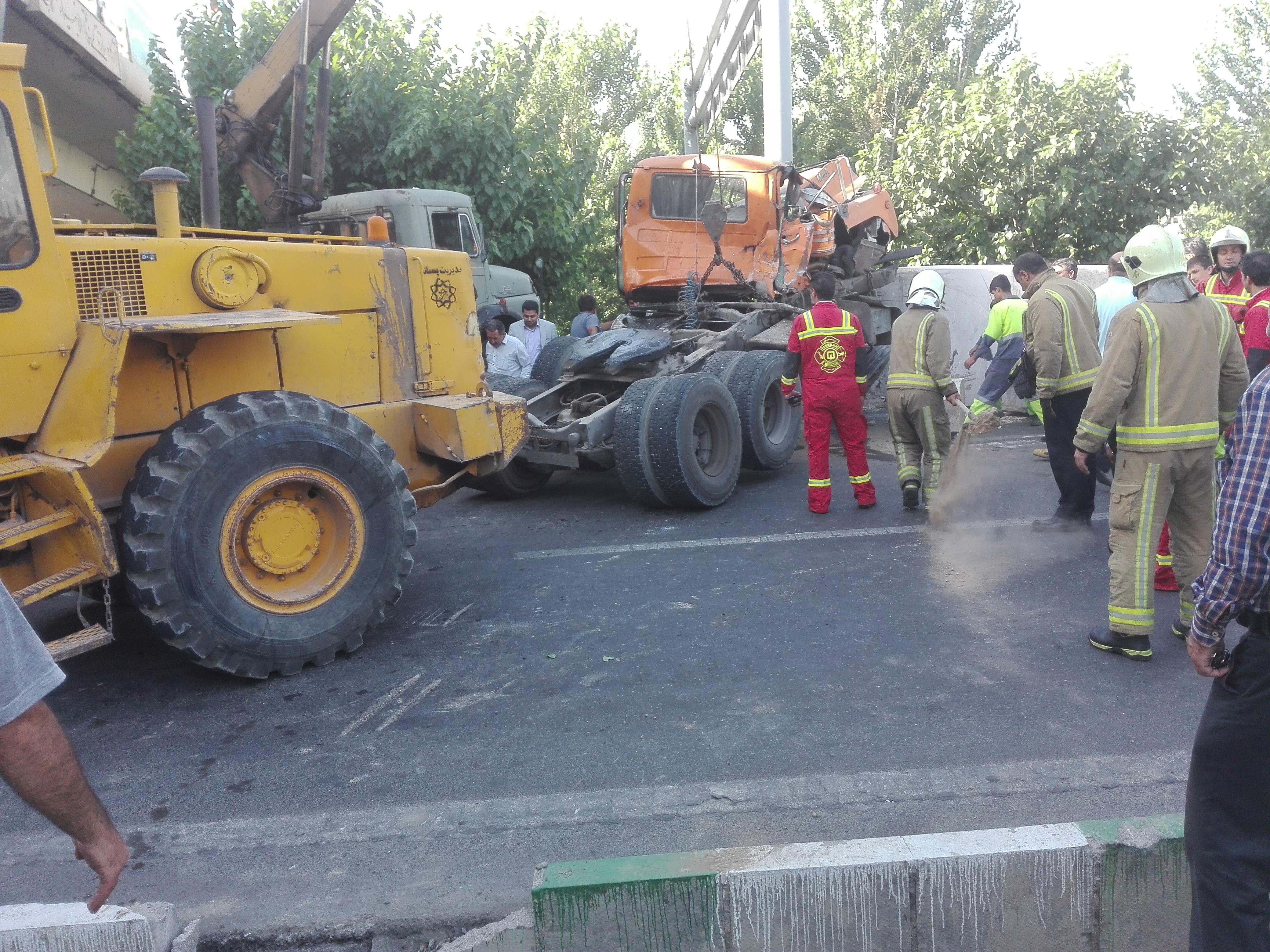 مسیر حرکت این کامیون از نمایشگاه بین المللی تهران (سئول) خروجی به سمت اتوبان نیایش بود که به دلیل عدم کنترل راننده ناگهان خودرو به وسط اتوبان میاید و چون بامداد جمعه بود خودرویی در آن مسیر تردد نداشت و همین نکته باعث شد تا تنها مصدوم حادثه راننده باشد که به گفته شاهدان عینی از ناحیه گردن مصدوم و به بیمارستان فیروزگر منتقل شد.