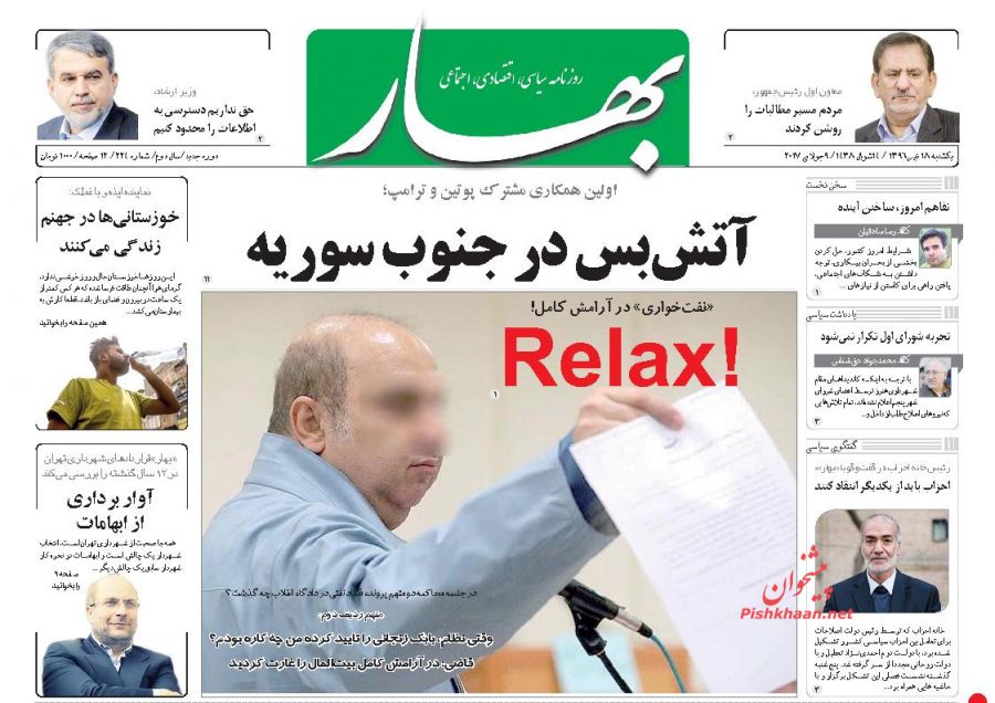 توتال اگر کرسنت 2 نیست چرا متن قرار داد را پنهان میکنید / هشدار بانک مرکزی به سپرده گذاران بانک کاسپین / دیوان محاسبات جلوی شهرداری بایستد / نفت خواری در آرامش کامل / معمای غیبت / شرکای زنجانی در دادگاه نفتی / کاهش نرخ سود بانکی برنامه دولت است / تخفیف و دیگر هیچ / کار چاق کن های 44 میلیاردی / ایجاد 450 هزار شغل