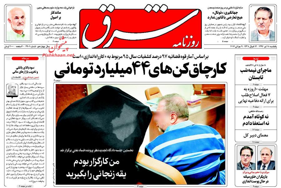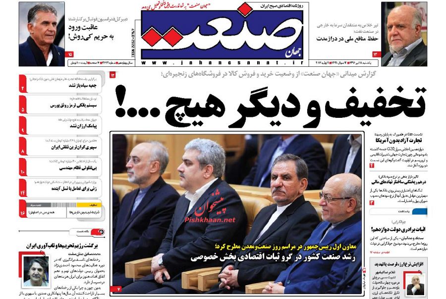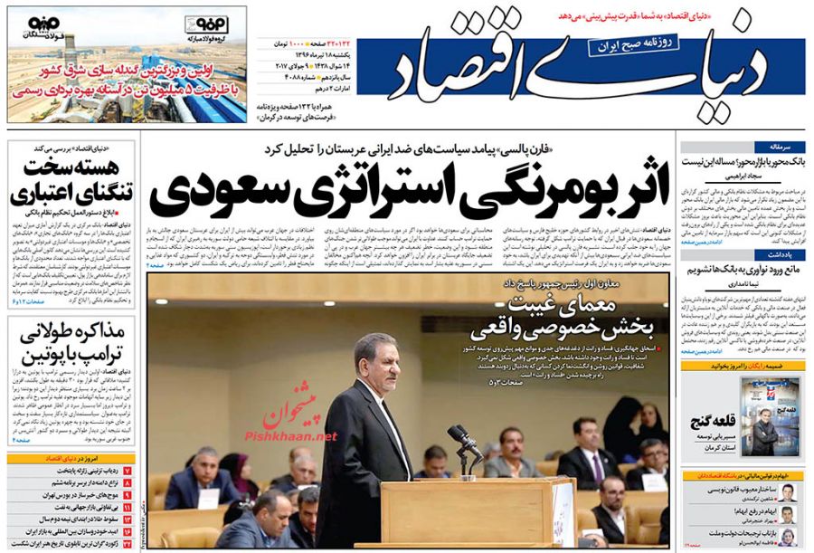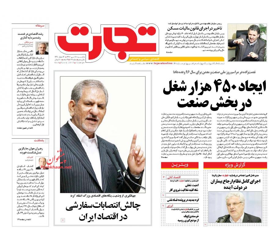 صفحه نخست روزنامه های اقتصادی 18 تیر 1396
