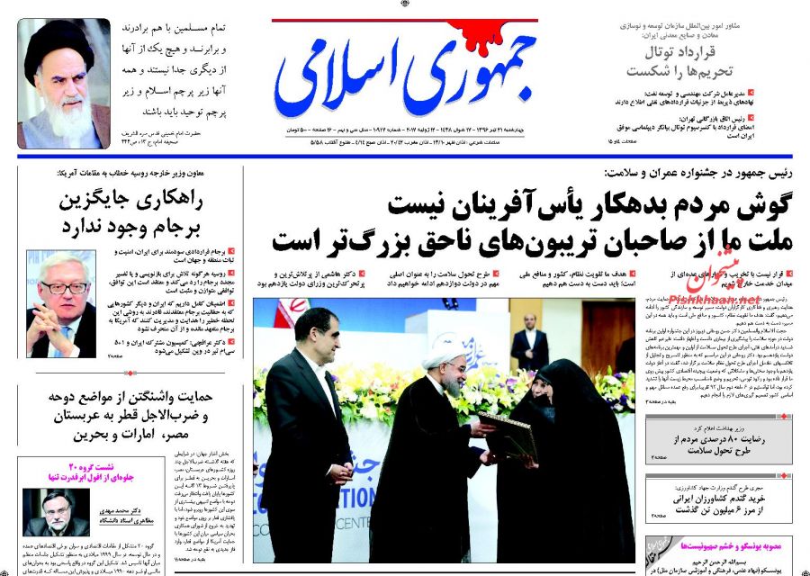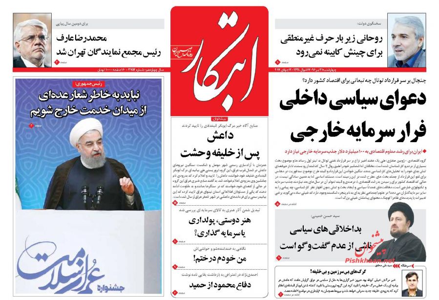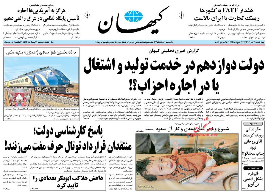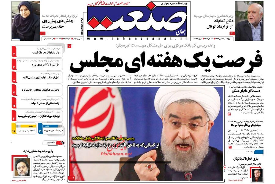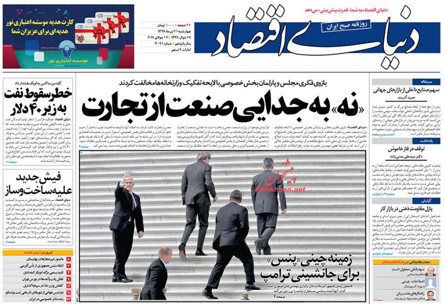 صفحه نخست روزنامه های اقتصادی 21 تیر 1396