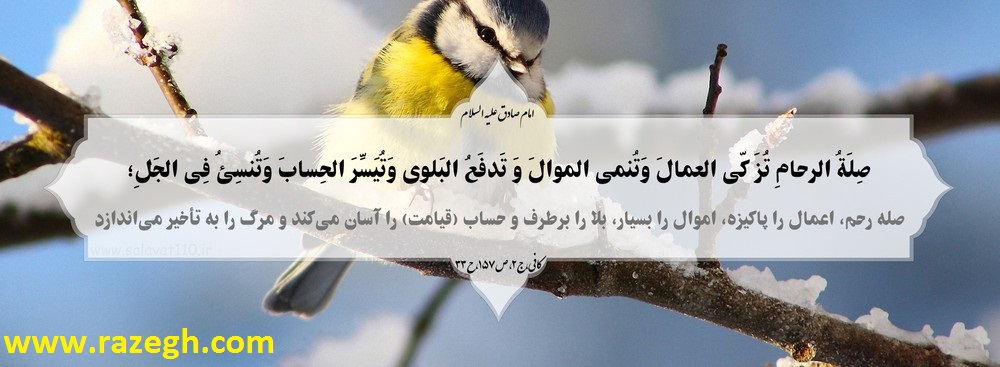 صله رحم : حضرت سجاد ( ع ) فرمود : مَن سَرَّهُ اَن یَمُدَّاللهُ فی عُمرِهِ وَ اَن یَبسُطَ لَهُ فی رِزقِهِ فَلیَصِل رَحِمَهُ؛ هر کس دوست دارد ، خدا عمرش را طولانی و روزی اش را افزایش دهد ، باید صله رحم کند .