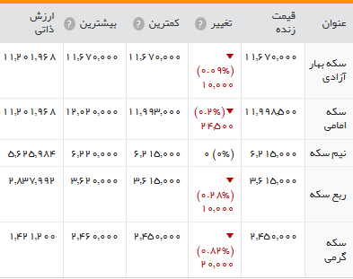 آخرین نرخ سکه و طلا