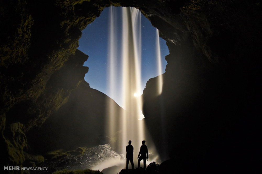 بازدید از آبشار طبیعی در شبی مهتابی در ایسلند  (Solent)